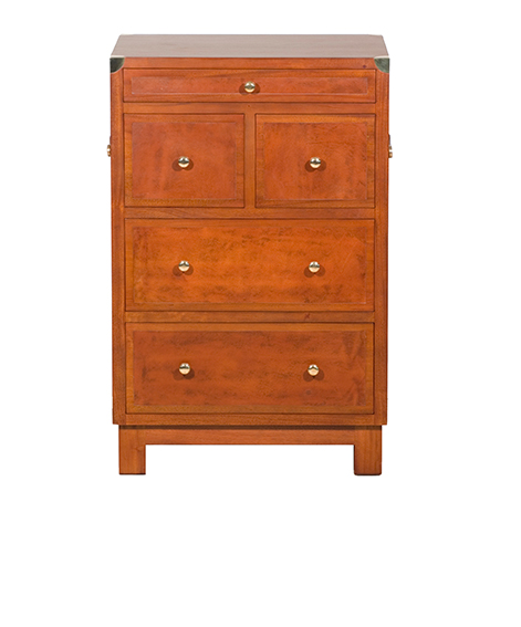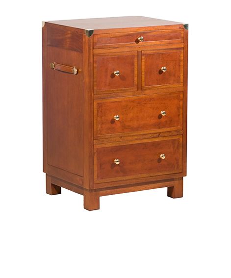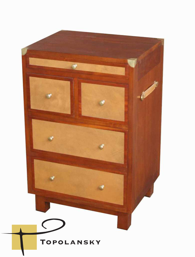 The Kinshasa Chest has got leather inlays on all 5 drawers and also both sides, 15 leather colours are available to choose from and the wood stain could also be changed.