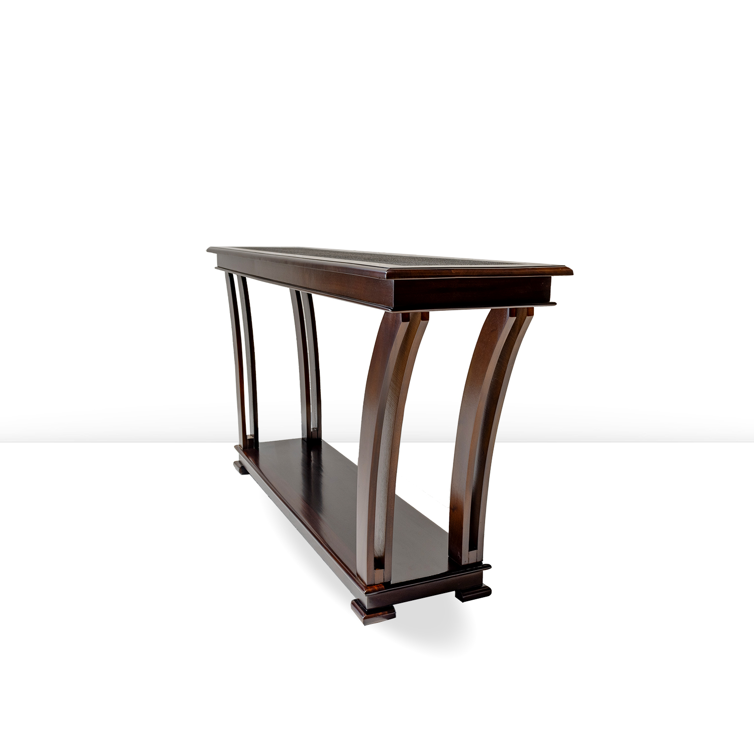 The top of the esteemed Senegal Console 1.60m is Hand Chiseled to a beautiful finished effect. We flatten the top chiseled inlayed surface and stain it black with a lighter centre and give it an undertone with a touch of red/yellow to give depth for a better visual to appreciate the hand workmanship of the artisans.