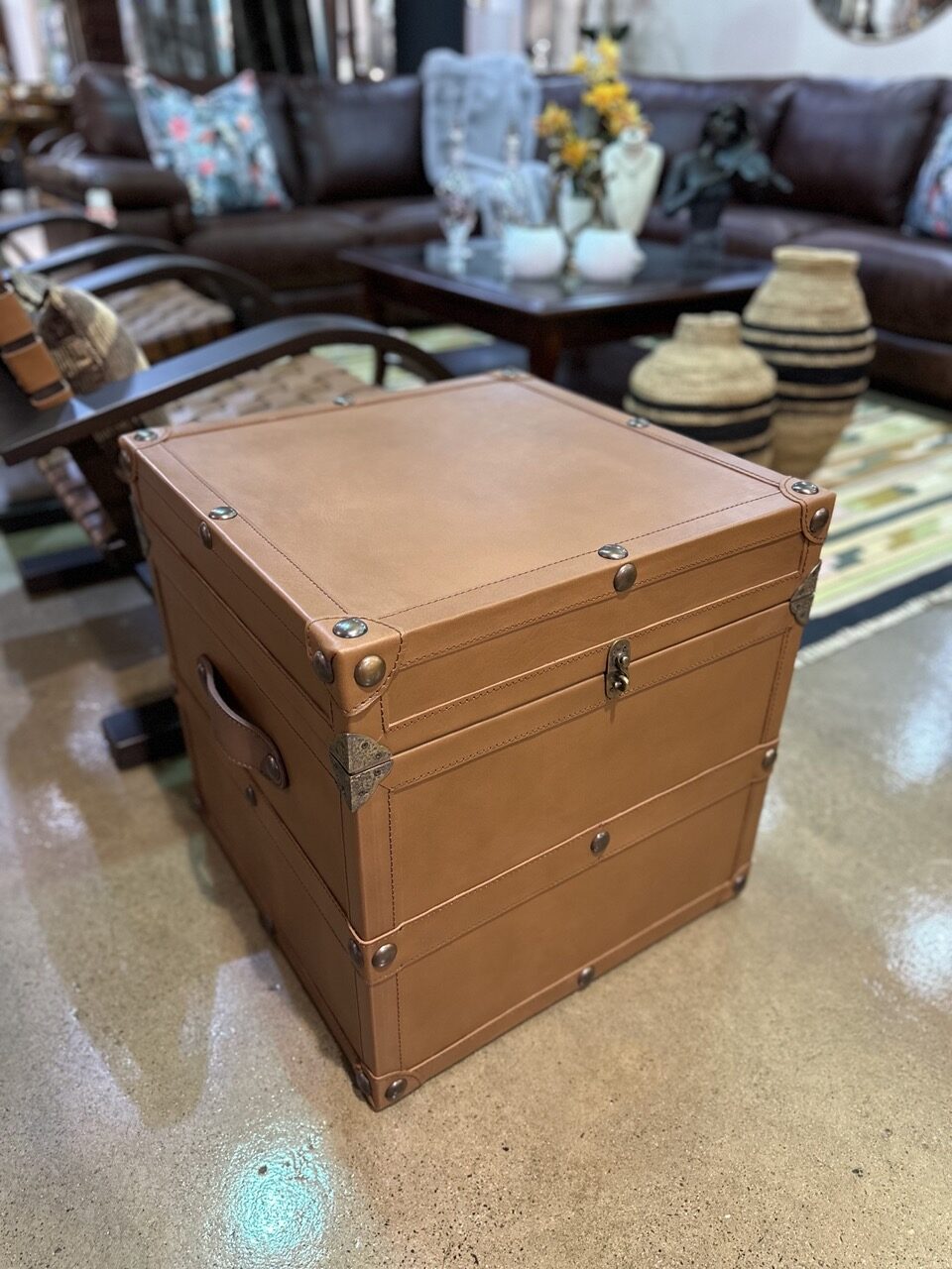 ANTIQUE LEATHER TRUNK CUBE